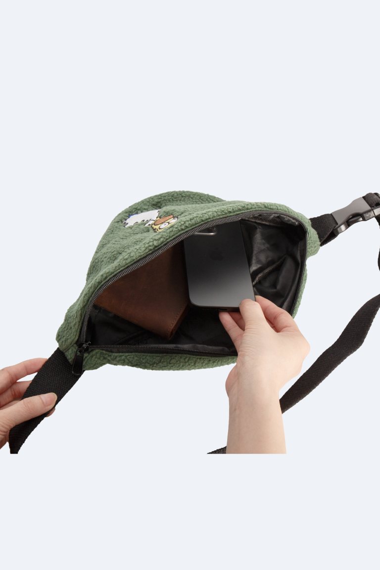 Inspired by the iconic meme, this olive green fanny bag is the perfect mix of style, humor, and practicality. Featuring an embroidered Homer disappearing into the bushes, this bag adds a fun twist to your everyday look while keeping your essentials close.
